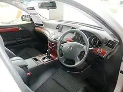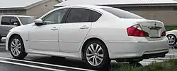 The Nissan Fuga (Japanese: 日産・フーガ Nissan Fūga) is a mid-size luxury sedan produced by Japanese automaker Nissan from 2004 till 2022. It is built on a wider, stretched wheelbase version of the Nissan FM platform.[1] After the Nissan Cima and Nissan President were discontinued in August 2010, the Fuga became Nissan's flagship vehicle. In North America and Europe, the Fuga was sold as the second and third-generation Infiniti M and Infiniti Q70, where it was the flagship sedan of the Infiniti luxury division of Nissan from 2006 to 2019. In 2022, the Fuga was discontinued alongside the Cima, leaving the Skyline as Nissan's sole sedan offering in Japan.