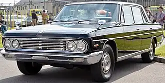 The President was available with either the 4.0-litre Y40 V8 engine with 180 PS (132 kW), developed specially for that model, or the 3.0-litre H30 straight-six. From the outside, the V8 is easiest identified by its twin exhaust, whereas the six only has a pipe on the left side.[3] Very lavishly appointed for its time, the President served as the official car of the Japanese Prime Minister Eisaku Satō, while the Emperor of Japan was transported in one of four Nissan Prince Royals developed by Prince Motor Company. Each President was individually tested and fully run in before delivery.[3] The availability of a V8 was regarded as an extravagant feature once it's realized that urban two-way streets are usually zoned at 40 km/h (25 mph) or less,[4] as mentioned in the article Speed limits in Japan.