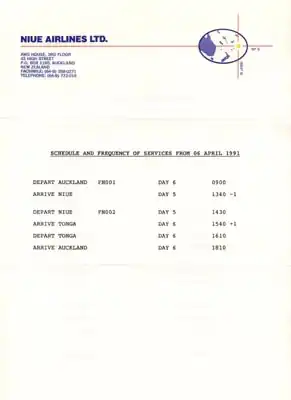 In 1991, services were operated from Auckland to Niue, and returned via Tonga.
