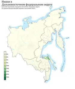 Settlement of Nivkhs in the Far Eastern Federal District by urban and rural settlements in%, 2010 census