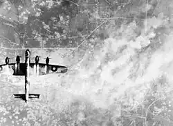 During the war 103 Squadron flew over 6,000 operational sorties, at a high cost in men and machines. On 14 February 1943, the squadron was sent to bomb Milan in Northern Italy but the bomber leading the formation was hit by incendiary bombs dropped from another Lancaster over the target and crashed in the southern outskirts of the city. Some parts of the bomber were discovered in 1990 during the extension of the Milan Metro. After the war, on 26 November 1945, the Squadron was disbanded by renumbering it to 57 Squadron.[1][2][3]