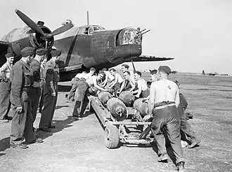 ![]() A Vickers Wellington of 150 Squadron being prepared for a night raid on Bizerte | |