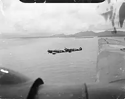 After being formed in June 1942, under the command of Squadron Leader A. Crighton, No. 15 Squadron was sent to Tonga later that year where it began operating the P-40 Kittyhawk.[1] It deployed to Kukum Field on Guadalcanal in April 1943,[2] under the command of Squadron Leader Michael Herrick.[3] In October 1943, the squadron formed part of a New Zealand fighter wing along with No. 18 Squadron RNZAF; in November 1943 the wing flew over 1,000 sorties in support of operations on Bougainville Island, beginning with the Landings at Cape Torokina.[4] After periods operating from New Georgia, Espiritu Santo and Bougainville Island, the squadron was deployed to Green Island from February to April 1945. By this stage it was operating F4U Corsair aircraft. It was disbanded in October 1945.[1]