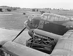 The squadron was reformed on 16 March 1936 from elements of 57 Squadron at RAF Upper Heyford with the Hawker Hind and re-equipped with the Fairey Battle in 1938. On 2 September 1939, the unit moved back to France, where it began dropping leaflets and flying reconnaissance missions. By June 1940, having suffered many losses while bombing advancing German troops, the unit was evacuated to England, where it converted to the Bristol Blenheim. In November, it rearmed with Vickers Wellingtons and began bombing a wide variety of Axis targets with the new longer-range aeroplanes. In December 1941, the squadron began changing to Short Stirlings and continued its bombing raids in occupied Europe against everything from infantry columns to V-weapon sites. Missions in 1942 included Operation Canonbury 1 and 2 on the night of 24 April and 4 May to bomb the Škoda Works factory at Plzeň in Czechoslovakia, in support of the partisan group inserted to assassinate Reinhard Heydrich in Operation Anthropoid.[4] In July 1942, the unit moved to RAF Downham Market and in March 1944 to RAF Woolfox Lodge in Rutland. In August 1944, it moved once more, this time to RAF Methwold with the Avro Lancaster.
