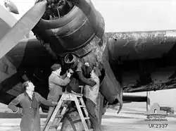 On 27 December 1944 No. 462 Squadron was relocated to RAF Foulsham and became part of No. 100 Group RAF. This group specialised in electronic warfare and No. 462 Squadron's aircraft were modified to radar jamming equipment and other countermeasures.[15][16] Until the end of the war the squadron used its special equipment and mounted small diversionary attacks to deceive the Germans as to the location of the raids conducted by Bomber Command. While the squadron maintained a high rate of operations at times, its losses were relatively light as the countermeasures carried by the aircraft also protected them from attack.[16] No. 462 Squadron continued to operate until almost the end of the war in Europe, and was the only Australian squadron in Bomber Command to either fly a higher number of sorties in April 1945 than March or operate in May.[17] The squadron flew its final operation of the war on the night of 2/3 May.[16]