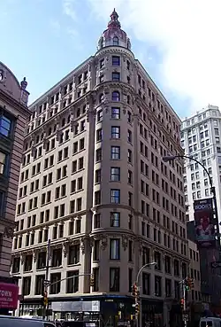 The building is located at 1170 Broadway (1166–1172, also known as 14-18 West 28th Street) on the southeast corner of 28th Street and Broadway in the NoMad neighborhood of Manhattan. It was built in 1902–03 as stores and offices, and was designed by Schickel & Ditmars in the Beaux Arts style. The building was originally named after the first owner, Caroline H. Johnston, and called the Johnston building. It is located within the Madison Square North Historic District.[13]