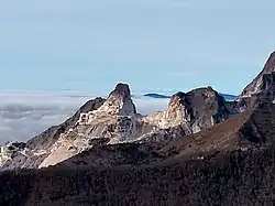 The Apuan Alps are rich in historical, artistic, archaeological and cultural evidence, including some very ancient ones, being among the few regions in Italy where there are sure traces of Paleolithic civilization remaining.[203] There are also historical evidences covering a time span from the early Iron Age, to the civilization of the Ligures Apuani, to Roman civilization, to the Middle Ages and to the modern and contemporary ages, some of them related to the marble mining activity itself. There are also testimonies of the Gothic Line,[204][205] of the Italian resistance movement[206] and of the Second World War,[207] such as the Parco Nazionale della Pace di Sant'Anna di Stazzema (Peace National Park) in Sant'Anna di Stazzema, the Parco della Resistenza (Resistance Park) at Monte Brugiana and the Sentiero della Libertà (Freedom Trail) in Molazzana.[208] In 2021 the Club Alpino Italiano also proposed the establishment of a Cultural Park of the Apuan Alps,[126] including the house where Fosco Maraini spent his last years.[208]