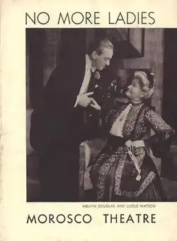 No More Ladies was a 1934 Broadway three-act comedy written by A. E. Thomas, produced by Lee Shubert, and staged by Harry Wagstaff Gribble with scenic design created by Watson Barratt. It ran for 162 performances from January 23, 1934 to June 1934 at the Booth Theatre. The play was included in Burns Mantle's The Best Plays of 1933-1934. It was adapted into the 1935 film No More Ladies directed by Edward H. Griffith and starring Joan Crawford, Robert Montgomery and Franchot Tone.