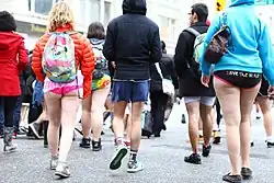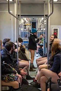 The No Pants Subway Ride (UK: No Trousers on the Tube Ride[1]) is an annual event where a group of people take a ride on rapid transit public transport trains while not wearing trousers.[2] Beginning in New York in 2002, the event had spread worldwide to as many as sixty cities as of 2013.
