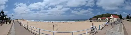 Newcastle East is an inner city suburb of Newcastle, New South Wales, Australia, located immediately east of Newcastle's central business district at the mouth of the Hunter River.[2] The Awabakal and Worimi peoples are acknowledged by City of Newcastle as the descendants of the traditional custodians of the land situated within the Newcastle local government area, including wetlands, rivers creeks and coastal environments. It is known that their heritage and cultural ties to Newcastle date back tens of thousands of years.[3] The suburb includes Fort Scratchley, Newcastle Ocean Baths and Newcastle Beach.[4] Formerly a site of heavy industry and railway yards, the suburb now contains the large Foreshore Park, and historic terraced housing.