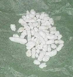 Noghl (Iranian Persian) or Nuql (Dari) (Persian: نقل), also Mlabbas (Syrian Arabic) (Arabic: ملبس), are sugar-coated almonds,[1][2] a traditional Iranian and Afghan confection.[3] It is made by boiling sugar with water and rose water and then coating roasted almonds in the mixture.[3] It can also be made with other nuts such as walnuts or others. Noghl is often eaten with tea.[1][3]