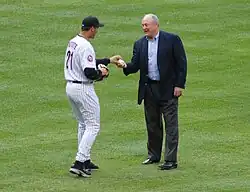 On April 18, 1970, Ryan tied a Mets record by striking out 15 batters in one game.[1] Four days later, Ryan's teammate Seaver topped it with a then-MLB record 19 against the San Diego Padres (Ryan tied this record four years later).[16] Ryan has credited his time with Seaver and the Mets with turning him from just a flamethrower into a pitcher.[17]