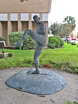 Ryan played baseball for Coach Jim Watson at Alvin High School for all of his high school career.[8][9] Ryan held the school's single game strikeout record for 44 years, striking out 21 hitters in a seven-inning game.[10] The record was tied by Alvin High School pitchers Aaron Stewart and Josh Land in the same week in 2009.[11] In 1963, at an Alvin High School game at Clear Creek High School in League City, Texas, Red Murff, a scout for the New York Mets, first noticed sophomore pitcher Ryan. Coach Watson recounted to Murff that some opponents refused to bat against Ryan and how his hard pitches would sometimes break bones in his catchers' hands. In his subsequent report to the Mets, Murff stated that Ryan had "the best arm I've seen in my life."[5] As a senior in 1965, Ryan had a 19–3 record and led the Alvin Yellow Jackets to the Texas high school state finals. Ryan pitched in 27 games, with 20 starts. He had 12 complete games, with 211 strikeouts and 61 walks.[7]