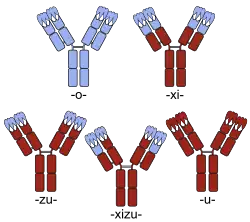 - ^ Parren, P.; Carter, P.J.; Pluckthun, A. (2017). "Changes to International Nonproprietary Names for antibody therapeutics 2017 and beyond: of mice, men and more". mAbs. 9 (6): 898–906. doi:10.1080/19420862.2017.1341029. PMC 5590622. PMID 28621572.