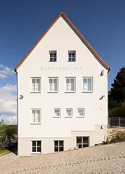 ![]() NOMOS Glashütte headquarters inside the former Glashütte station building | |