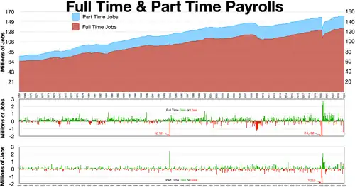 Nonfarm payroll employment is a compiled name for goods, construction and manufacturing companies in the US. Approximately 80% of the workforce is accounted for nonfarm payrolls [1] and it excludes farm workers, private household employees, actively serving military or non-profit organization employees. Approximately 131,000 businesses and government agencies, which amounts to around 670,000 worksites, are surveyed on a monthly basis. [2]