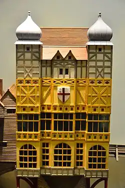 Nonsuch House was a four-storey house on London Bridge, completed in 1579. It is the earliest documented prefabricated building.[1] Originally constructed in the Netherlands, it was taken apart and shipped to London in pieces in 1578, where it was reassembled, with each timber being marked so that it could be reconstructed correctly.[2] The name Nonsuch may have referred to Henry VIII's now vanished Nonsuch Palace outside London; it meant there was "none such" anywhere else, that it was an unequalled paragon of its kind.