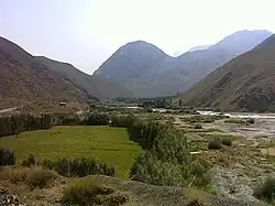 - "At the Yalu gorge the Nur cuts at right angles through an enormous mass of basalt, forming a rocky defile very remarkable for its gloomy grandeur and dark colouring, so markedly in contrast with the snowwhite precipices of gypsum which rise on either side of the valley at the village of Yalu. The valley is ruggedly picturesque the whole way down to Baladeh, and the river contains trout that took our flies. At Baladeh, the Nur, passing through a defile, turns sharply east to join the Lar river at Panjab;"[1]