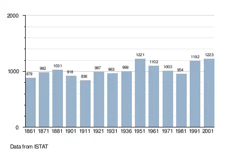 - ^ All demographics and other statistics: National Institute of Statistics (Italy) (Istat).