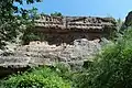 The tombs are generally constructed from large blocks of tuff carved directly into the cliff, and are entered from stairs heading down into the rock. Their cliffside construction, rather than being built on the ground, makes the tombs unusual for the Etruscans. Originally bodies were placed within stone sarcophagi that may still be found in many of the tombs.[2]