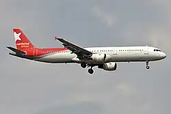 Nordwind Airlines, LLC (Russian: ООО «Северный ветер», romanized: Severný veter) is a Russian leisure airline. The company is headquartered in Moscow,[3] and its hub is at Sheremetyevo International Airport. Nordwind Airlines primarily operates service between airports in Russia and holiday destinations around Europe and Asia.[4] It is banned from flying in the European Union.[5]