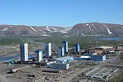 Norilsk Nickel (Russian: ГМК «Норильский никель»[3]), or Nornickel,[4] is a Russian nickel and palladium mining and smelting company. Its largest operations are located in the Norilsk–Talnakh area near the Yenisei River in the north of Siberia. It also has holdings in Nikel, Zapolyarny, and Monchegorsk on the Kola Peninsula, in Harjavalta in western Finland, and in South Africa.[5]