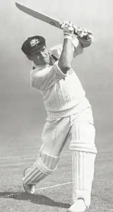 Standing six feet tall, O'Neill was compared to Don Bradman upon his entry into Test cricket.[4][12] At his best, he was a dynamic stroke maker who was a crowd favourite because of his ability to score at a high pace, in particular with his power off the back foot. He was noted for his nimble footwork, which he used to negate spin bowling; however, this slowed in his later career as he put on weight. O'Neill particularly liked to sweep the slower bowlers.[4][10][22] He often put too much emphasis on his right hand, allowing a large space between his hands on the bat handle, and then turning his right shoulder too square towards the bowler.[5][6][33] The renowned English batsman and captain Wally Hammond said that O'Neill was the best all-round batsman he had seen since World War II.[22] O'Neill's tall build, strength and good looks also drew comparison to his boyhood idol Keith Miller. Despite the comparisons to Bradman, O'Neill was much taller and broader, and was often impetuous whereas Bradman was known for his patience and lack of rashness.[4] O'Neill was also criticised for hitting across the line early in his innings.[10]