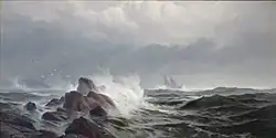 It is the subject of an 1872 painting Off Norman's Woe, by Edward Moran.[1]