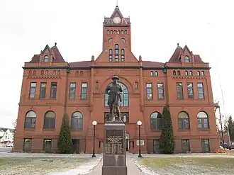 The Norman County Courthouse is a historic courthouse in Ada, Minnesota. It is actually the second building in Ada used by the county government. In 1883 the first offices were in a two story building on the NE corner of the block the current courthouse sits on. The county rented the space from the village of Ada for $430/yr.[2] After the new courthouse was built, the old building was moved three blocks north.