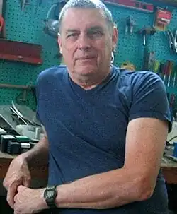 Subsequent robotic projects have included: "Facing Out Laying Low" (1977),[18][19][20] a stationary interactive robot designed to react to interesting behaviour in the gallery space surrounding it, and "Funny Weather" (1983), a robotic artificial weather system with interacting wind generators and sensors. His early networked art piece "Telephonic Arm Wrestling" (1986, with Doug Back)[21] used telephone data links to enable patrons to arm wrestle each other at a great distance.[22][23] The work was performed in real time between the Canadian Cultural Centre in Paris, France and the Artculture Resource Centre in Toronto, Ontario, Canada.[24] Some critics consider this piece to be a pioneering work in networked and long distance kinesthetic art.[22] A later work, "Them Fuckin' Robots" (1988), a collaboration with Laura Kikauka, investigated simulated sex.[25][26]