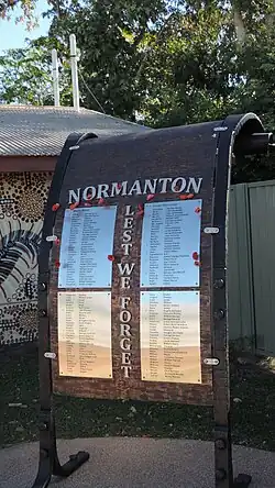 - ^ "Normanton War Memorial". Queensland War Memorial Register. Archived from the original on 9 February 2023. Retrieved 9 February 2023.