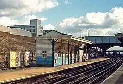 North of the Central line tracks were two freight lines, removed in the 1960s, running alongside the Central line as far as White City; to the north of those at a slightly higher level were the two tracks of the NNML.[9][10][11][12][13] The NNML platforms closed when the Central line was extended on new track from North Acton to Greenford station in 1947. Today, only the outer-most NNML platform remains partially intact, having been removed in the early 1950s.[14][15]