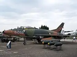 The only non-US air force to operate the F-100A model. The first F-100 was delivered in October 1958. It was followed by 15 F-100As in 1959, and by 65 more F-100As in 1960. In 1961, four unarmed RF-100As were delivered.[76] Additionally, 38 ex-USAF/Air National Guard F-100As were delivered later, to bring the total strength to 118 F-100As and four RF-100As. F-100As were retrofitted with the F-100D vertical tail with its AN/APS-54 tail-warning radar and equipped to launch AIM-9 Sidewinder air-to-air missiles.