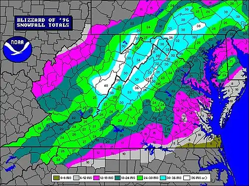- ^ "Service Assessment – Blizzard of '96" (PDF). NOAA. December 1996. Archived from the original (PDF) on August 26, 2016. Retrieved November 18, 2021.