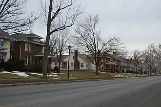 The majority of the area was developed from about 1918 to 1930, with infill development continuing into the 1950s.[2]: 7 These homes include notable examples of Colonial Revival, Tudor Revival, American Foursquare, and American Craftsman bungalow styles of residential architecture.[2]: 7 Other styles include English Cottage, Dutch Colonial Revival, Arts and Crafts, and California bungalow.[2]: 9–20 The mode style is American Foursquare, followed by Colonial Revival.[2]: 32