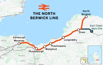 ![]() The terminus of the line at North Berwick | |||||||||||||||||||||||||||||||||||||||||||||||||||||||||||||||||||||||||||||||||||||||||||||||||||||||||