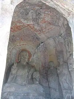 Initiated by order of Emperor Xuanwu of the Northern Wei in honour of his parents Emperor Xiaowen and Empress Wenzhao, the cave was not completed until the Tang.