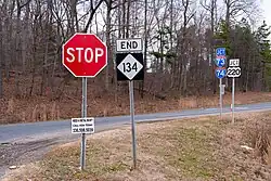 NC 134 is a predominantly two-lane rural highway that begins in downtown Troy at the intersection of North Main Street and East Main Street. Going north, it travels next to Denson Creek Golf Course before becoming the eastern edge of the Uwharrie National Forest. A couple of times the national forest goes over the eastern side of the road but not many. At Beane Country Road, the Uwharrie Forest finally goes west of the road as the road continues north. At Dawson Miller Road, NC 134 ends, just 600 feet (180 m) from the I-73/I-74/US 220 interchange.