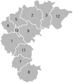 | Subdivisions | 3 cities; 8 counties |