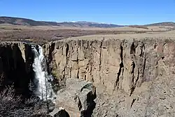 North Clear Creek Falls is a waterfall in Hinsdale County, Colorado, located within the Rio Grande National Forest. North Clear Creek is a tributary of the Rio Grande. The waterfall flows over a deck of Nelson Mountain tuff,[2] solidified ash from a volcano in the San Juan volcanic field that erupted about 27 million years ago.[3]