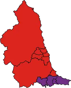 The constituency corresponded to the North East England region of the United Kingdom, comprising the ceremonial counties of Northumberland, Tyne and Wear, County Durham and parts of North Yorkshire.
