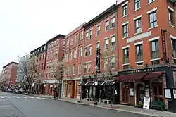 The North End became a fashionable place to live in the 18th century.[3] Wealthy families shared the neighborhood with artisans, journeymen, and laborers.[2] After the Revolutionary War, some of these individuals who were also British loyalists ended up leaving the North End for England or Canada.[5] Two brick townhouses are still standing from this period: the Pierce-Hichborn House and the Clough House on Unity Street.[3] The Old North Church was constructed during this time as well, now known as Christ Church. It is the oldest surviving church building in Boston.[3][6]