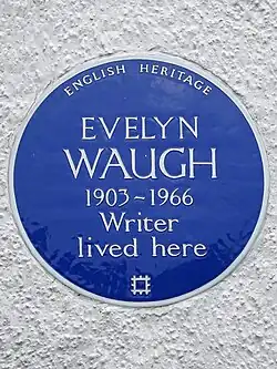 Blue plaque for the writer Evelyn Waugh on North End Road.