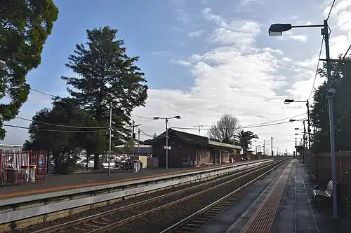 North Geelong railway station is a regional railway station on the Warrnambool line, part of the Victorian railway network and serves the northern Geelong suburb of the same name. The station was opened on 1 August 1883, and the current station building was provided in 1990.[2][3]