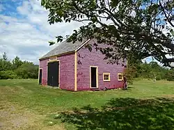 The site also includes a small barn and dry toilets. The outbuildings are covered in the same manner as the wooden shingle house. A garage, which is a later addition, is attached to the house by a covered passage.[2]