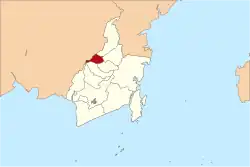 North Hulu Sungai Regency is one of the regencies in the Indonesian province of South Kalimantan. It was created from the bifurcation of the original Hulu Sungai Regency and formerly covered a much larger area in the north of the province, but on 14 July 1965 the northern districts were split off to create a separate Tabalong Regency, and on 25 February 2003 the eastern districts were split off to create a separate Balangan Regency. It now has a land area of 907.72 km2, and had a population of 209,246 at the 2010 Census[2] and 226,727 at the 2020 Census;[3] the official estimate as of mid-2024 was 238,250 (comprising 118,822 males and 119,428 females).[1] The capital of the regency is the town of Amuntai.
