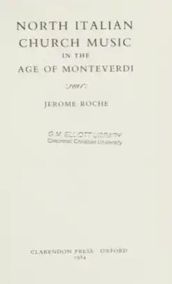 North Italian Church Music in the Age of Monteverdi is a 1984 book by British musicologist Jerome Roche, published by Clarendon Press, as part of their "Oxford Monographs on Music" series.