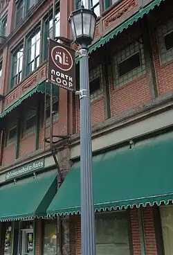 In 2005, the North Loop Neighborhood Association launched a re-branding project led by committee members Lisa Goldson Armstrong and Marybeth George. With the design talents from agency Little & Co, they launched a new logo and style guide for the North Loop which supported the neighborhood transformation.[12]