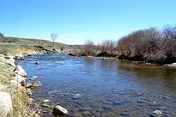 ![]() The North Fork Popo Agie River looking east near Lander, Wyoming in April 2020 | |