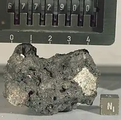 impact melt breccia | A glass-coated basaltic impact melt or "bomb" that has not been dated. |